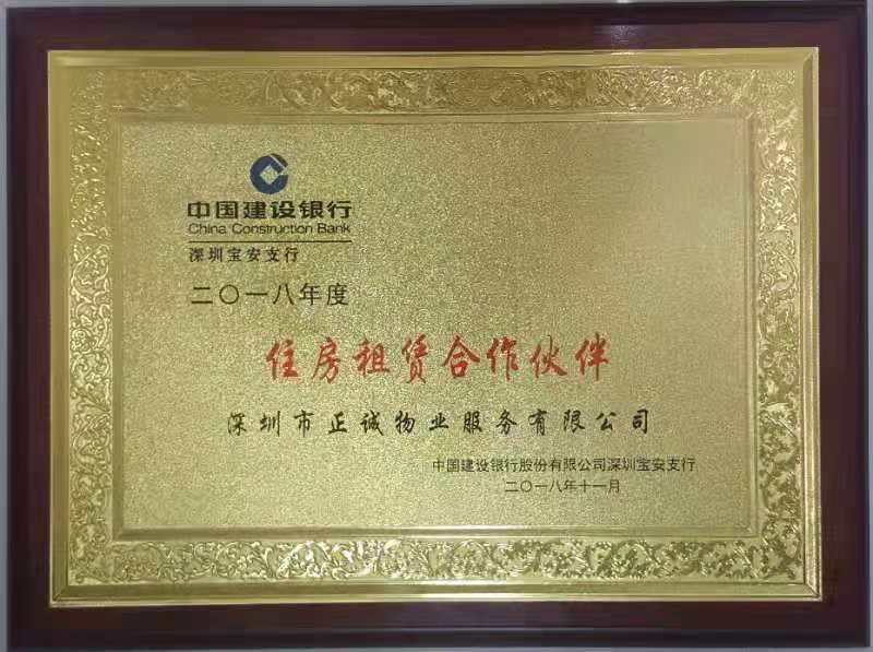 深圳建设银行创新金融模式,率先推出住房租赁普惠金融服务,携手建行精选合作运营商正诚房管家进行“存房”合作,双方优势互补、资源共享,共同培育健康可持续的住房租赁市场,助力实现深圳人民“住有所居”!(详见:重磅‖正诚与建信房管家达成‘存房’合作)为表彰正诚在住房租赁业务合作上的贡献,特予颁奖表彰: