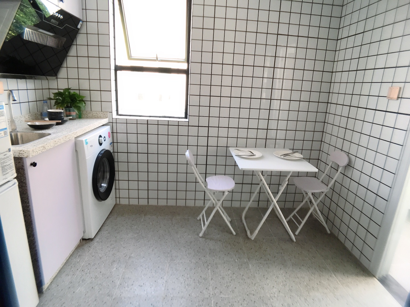 有开放厨房,也有独立厨房,上下壁柜都安排上,收纳无忧;滚筒洗衣机嵌入大理石台下方,不占地,充分合理利用空间。要大阳台或精致小家任君选择。
