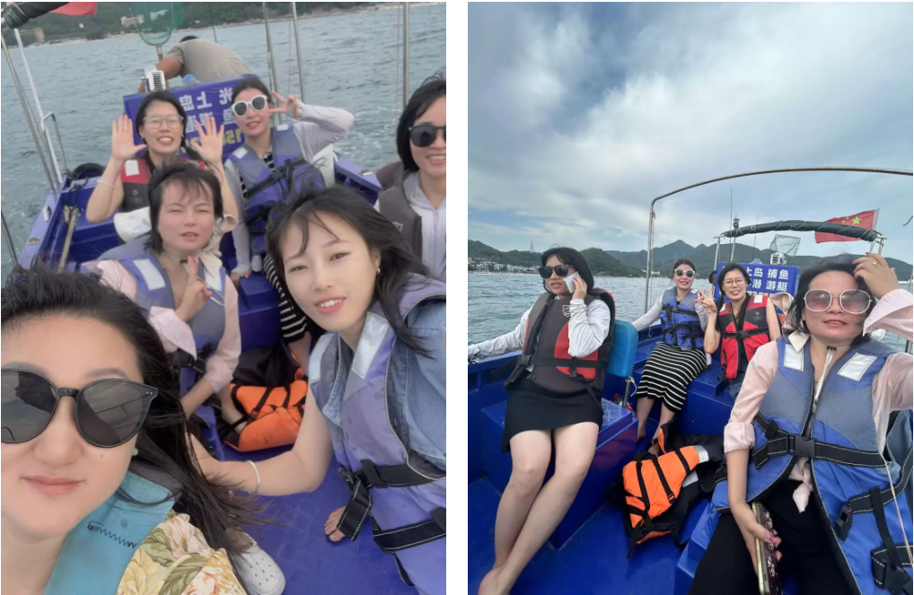 热烈而火辣的骄阳,哪挡得住那似火的热情,体验游艇和快艇的同事早已准备好,随时可出发。快艇像离弦的箭一样冲向大海的彼端,大家紧紧抓住扶手,感受快艇在水上飞速前进的震撼。海风吹过脸庞,带来清爽感觉的同时也带走了所有的紧张和压力。虽然出现了翻船的小插曲,幸好安全到达岸边的同事笑着说道“没事,刺激!”