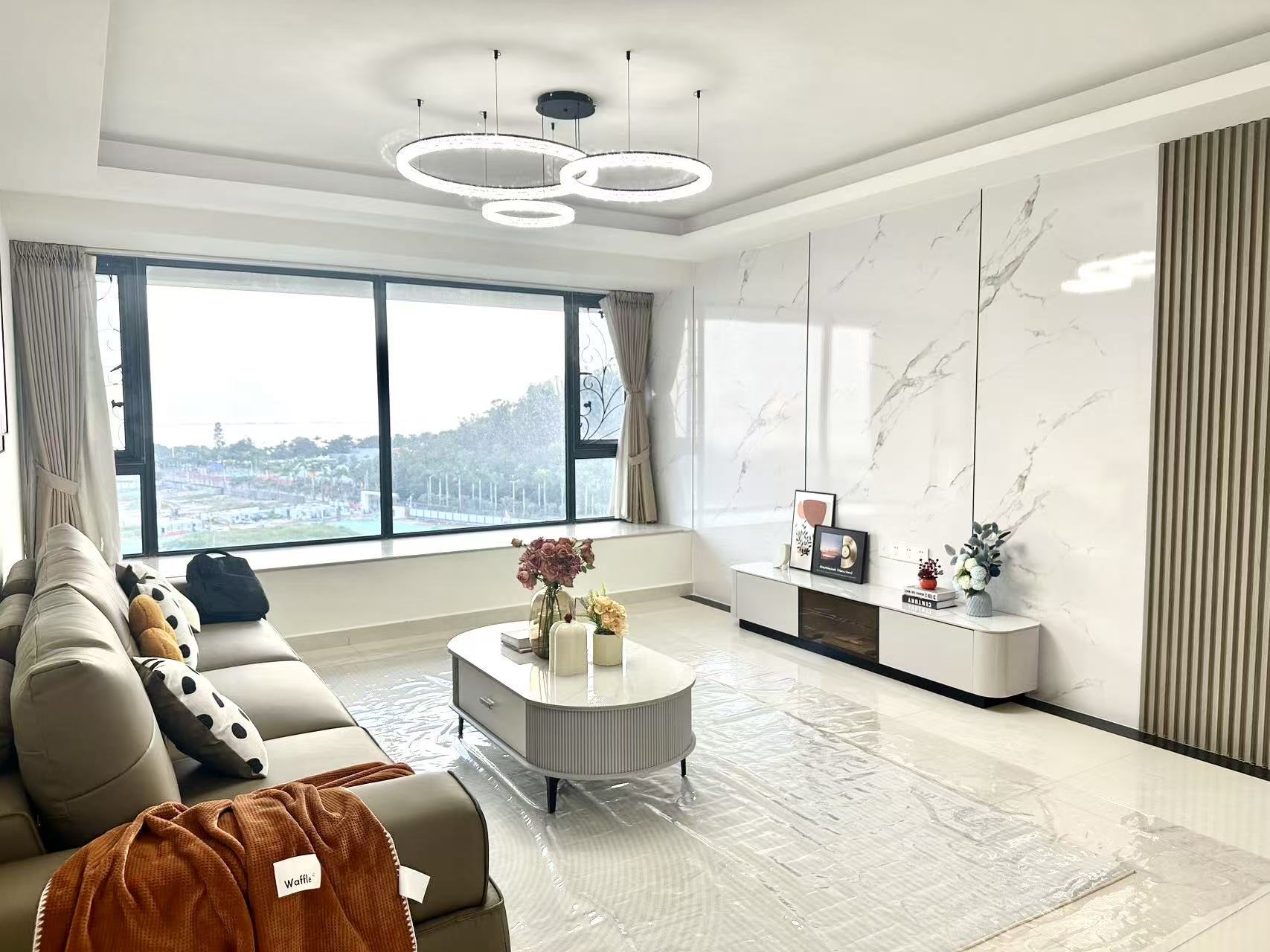 后来业主选择托管给我们,从设计到软装全流程包办:免费设计师上门,结合年轻租客的需求定制方案;专业施工队1-2个月极速完工,材料家具厂家直采省成本;最后还免费做软装布置,让房子彻底焕新。