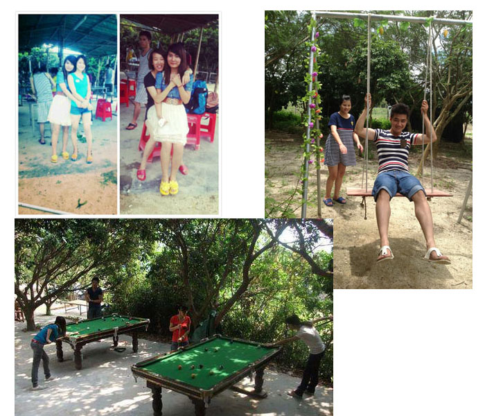 午后(13:30的)阳光温暖地照着大地,吃饱了的我们自由活动着,自拍着,有的荡秋千、有打台球、有的在树下乘凉等,他们的脸上都洋溢着幸福的笑容。让我们开心的笑容和明媚的阳光留在此刻此景。